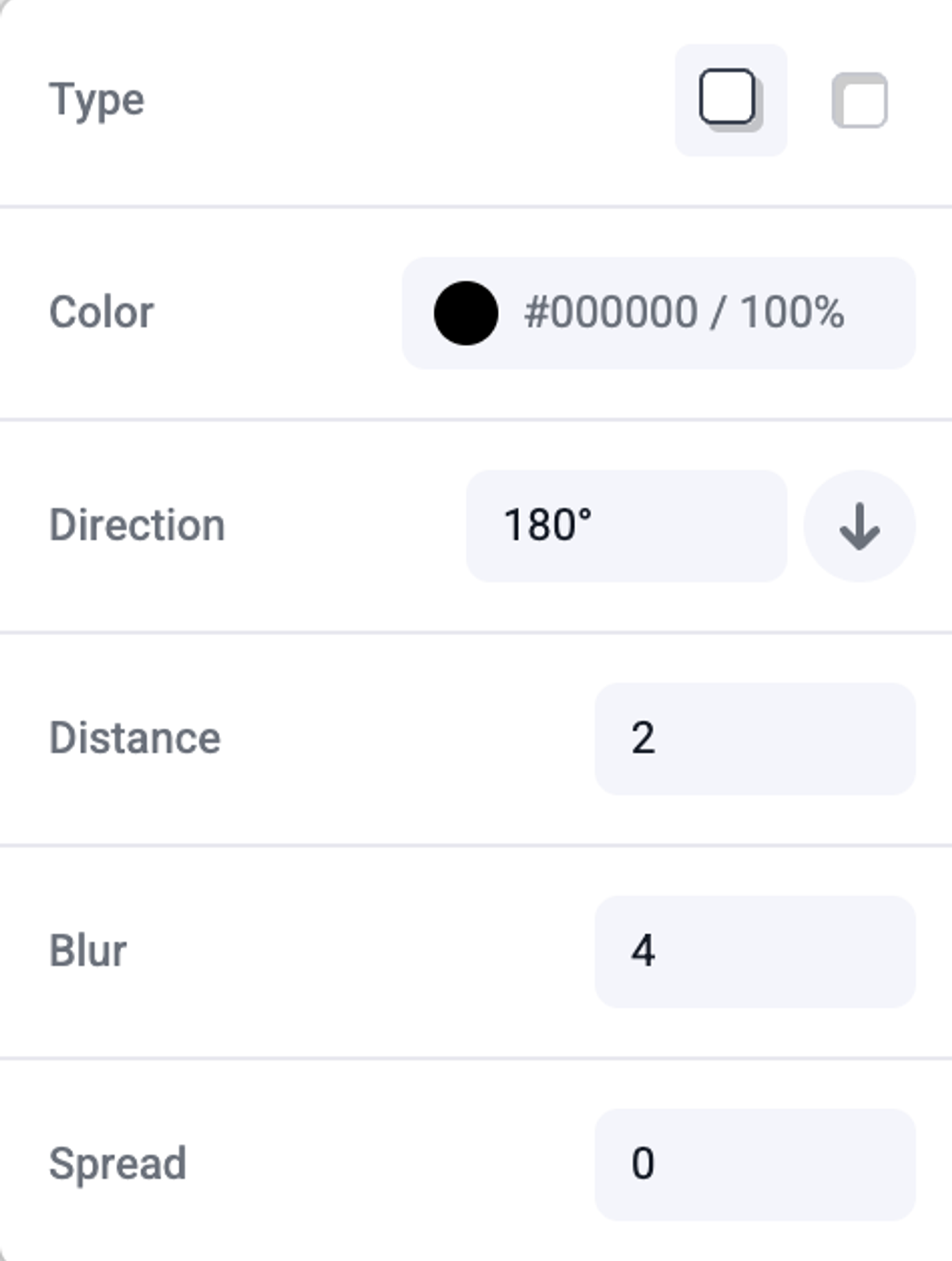 • Type: drop or inner shadow
